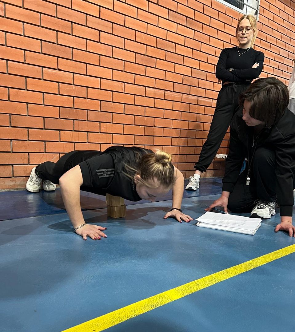Девушки соревновались в различных испытаниях: прыжок в длину с места толчком двумя ногами; подъём туловища из положения лежа на спине; сгибание и разгибание рук в упоре лежа; веселые старты.