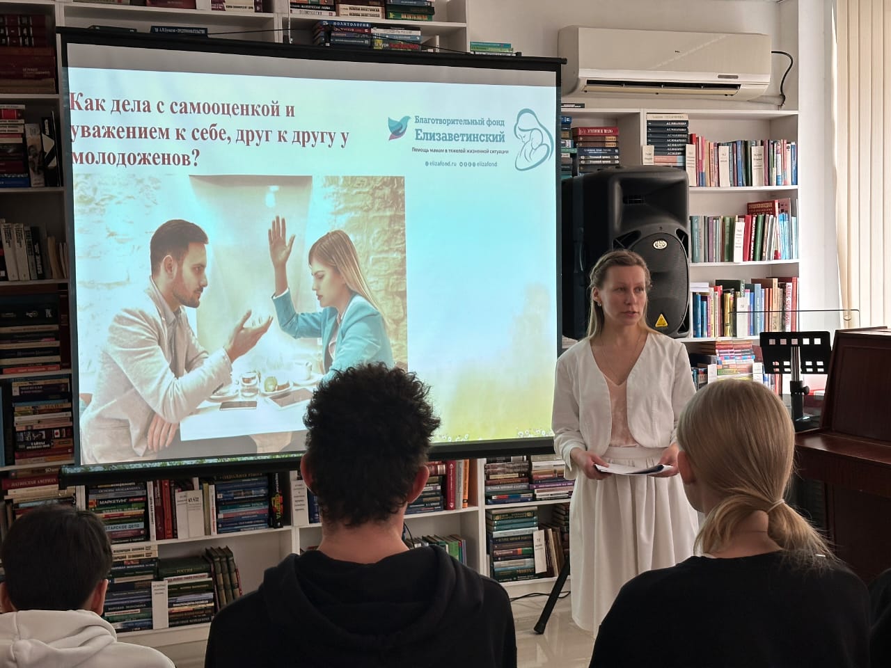 В рамках цикла бесед, посвящённых Году семьи в Астраханской библиотеке для молодёжи им. Б. Шаховского состоялся тренинг с участием психолога Елизаветинского фонда Екатериной Захаровой.