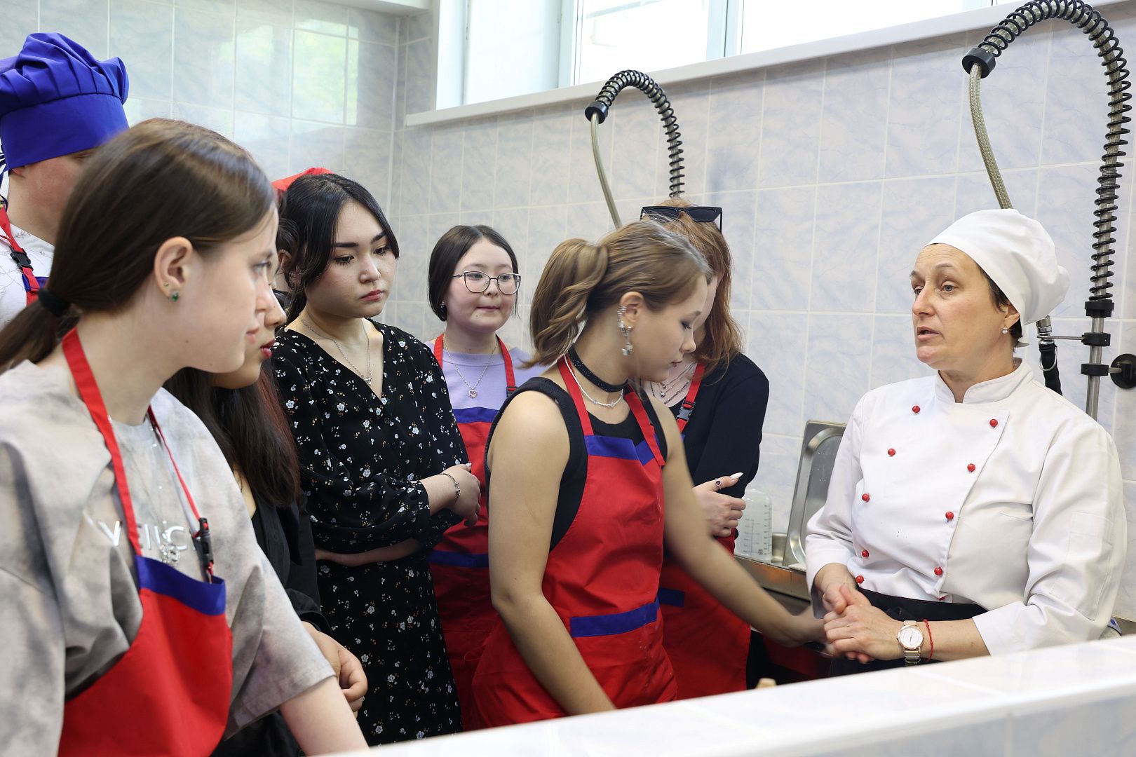 По специальности «Поварское и кондитерское дело» ребята приняли участие в профессиональной практике, где им предстояло приготовить профитроли со сливочным кремом. Это позволило им не только узнать о тонкостях работы специалиста по поварскому и кондитерскому делу, но и попробовать свои силы в приготовлении десертов.