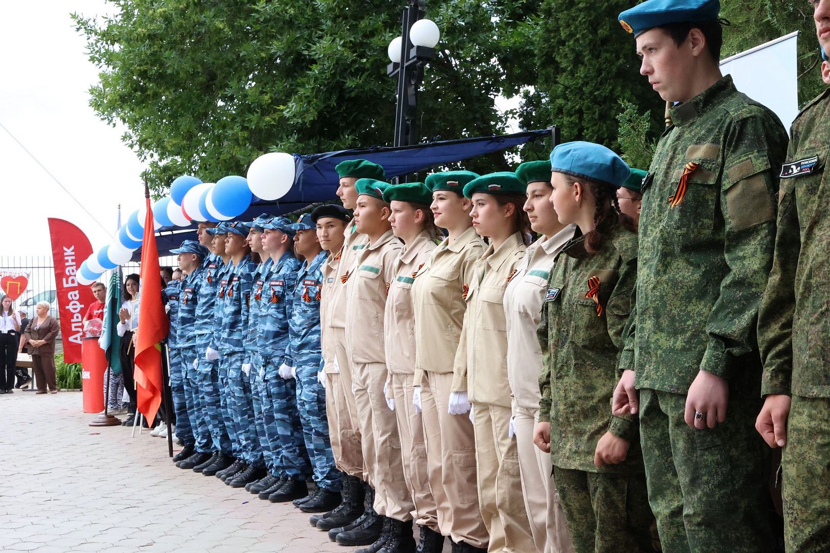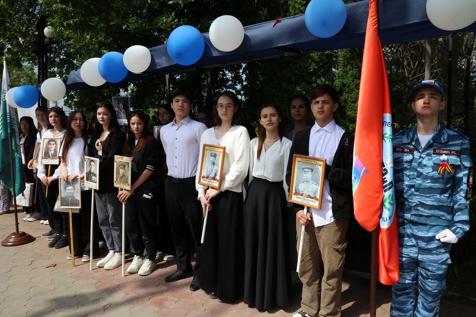 Поддержать бойцов патриотического клуба «Наследники Победы» пришли студенты отделения информационных технологий, экономики и права из групп ПСО-1109 (куратор Евгения Павловна Тураева) и ПСО-1209 (куратор Юлия Хусаиновна Осокина) вместе с педагогом-организатором отделения – Дарьей Юрьевной Кудиновой.