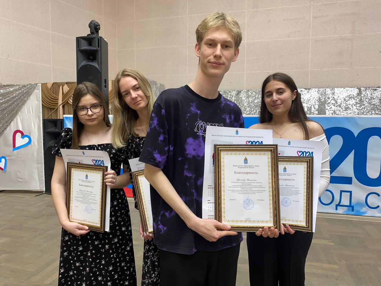 На праздничном концерте министр образования и науки Астраханской области Мария Николаевна Шалак вручила благодарственные письма волонтёрам и активистам «Движения Первых». Среди награжденных ребят и студенты нашего колледжа. За активную жизненную позицию, неравнодушное отношение к общественной жизни региона и активное участие в волонтёрской деятельности Благодарности министерства получили: Илья Чертин, Виталий Храмов, Анастасия Керецман, Виктория Казакова, Валентина Мансурова.