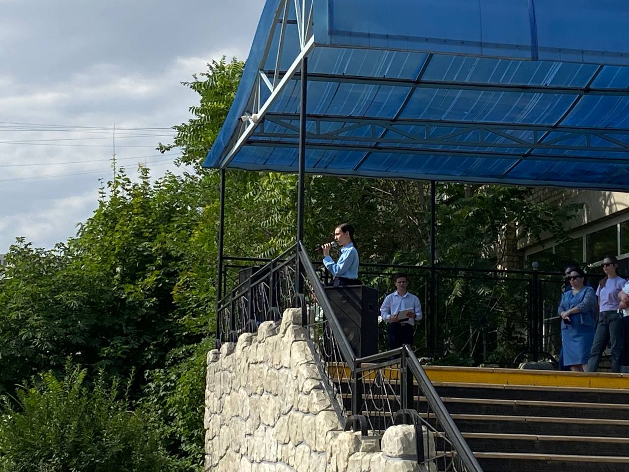 Присутствующие почтили минутой молчания память тех, кто отдал свои жизни в борьбе за мир и счастье на Земле, за нашу жизнь. Студенты Богдан Суровов и Полина Маркелова исполнили песни «Встанем» и «Баллада о солдате».