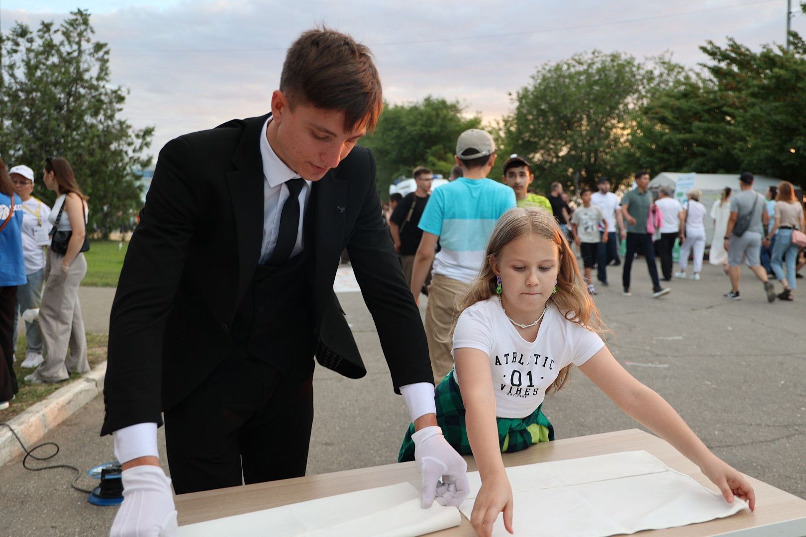 Ребята продемонстрировали гостям праздника способы складывания гостевых салфеток; провели игру «Найди пару», в которой были представлены главные достопримечательности Астраханского края; танцевальный флешмоб и игру «Угадай мелодию». Самые активные участники получили комплименты в виде сезонной композиции из свежих фруктов от поваров колледжа.