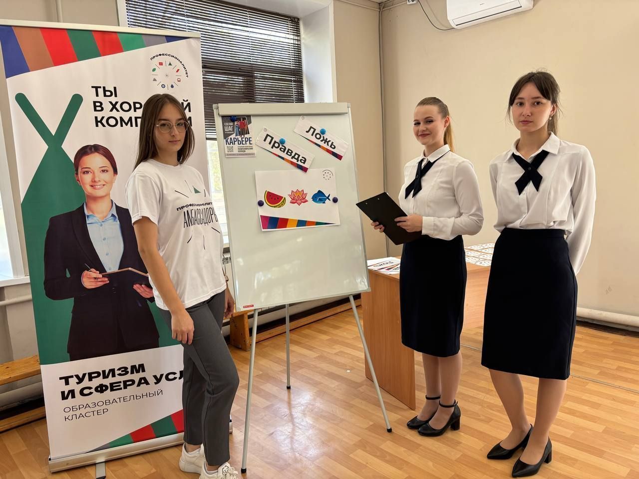Сотрудники центра рассказали школьникам о важности правильного выбора будущей  профессии, амбассадоры ФП Профессионалитет познакомили с особенностями проекта, а студенты колледжа продемонстрировали мастер-классы по направлению Туризм, Логистика и Нефтегазовое дело.