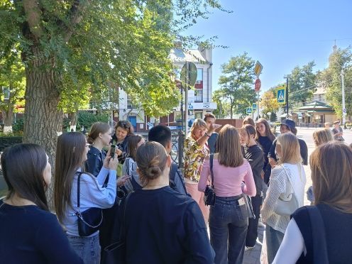 В День туризма на отделении сервисных технологий и дизайна состоялась экскурсия по историческому центру Астрахани – Белому городу. Её участниками стали студенты специальностей «Туризм» и «Туризм и гостеприимство» (гр. ТГ-1109). Провела экскурсию Инна Владимировна Даниелян, преподаватель политехнического колледжа, сертифицированный гид-экскурсовод.