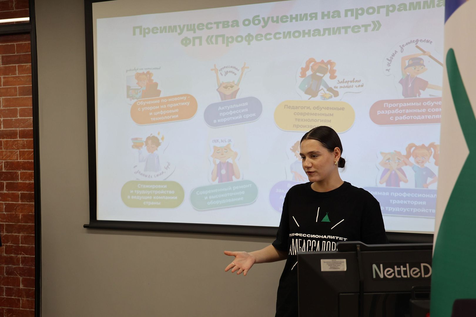 Амбассадоры проекта поделились с учащимися личным опытом, продемонстрировали достижения и результаты обучения по образовательным программам «Профессионалитета».