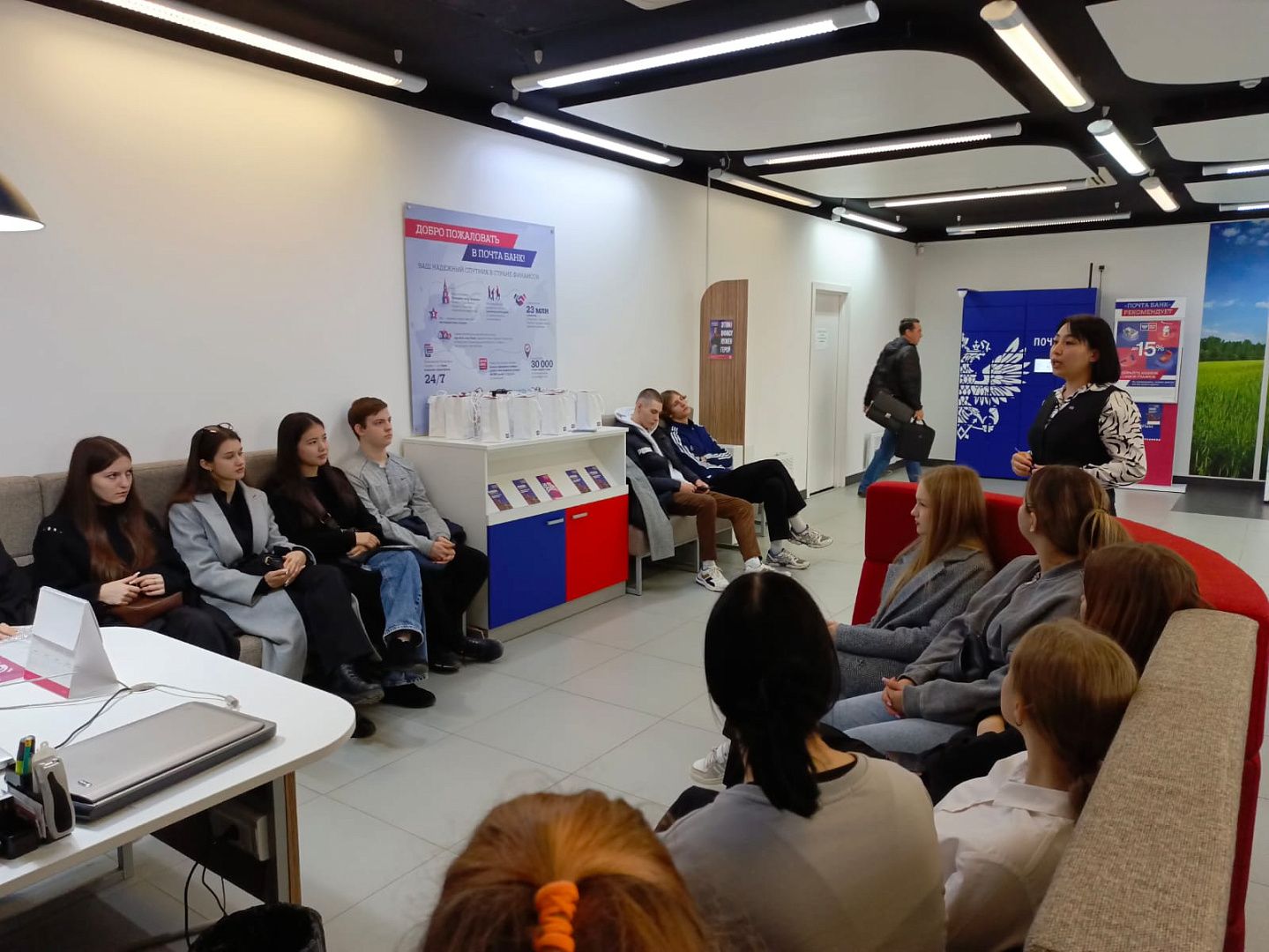 24 октября студенты группы ОДЛ-2109 отделения информационных технологий, экономики и права в сопровождении куратора Валентины Васильевны Белоусовой встретились со специалистами астраханского отделения «Почта-банка».
