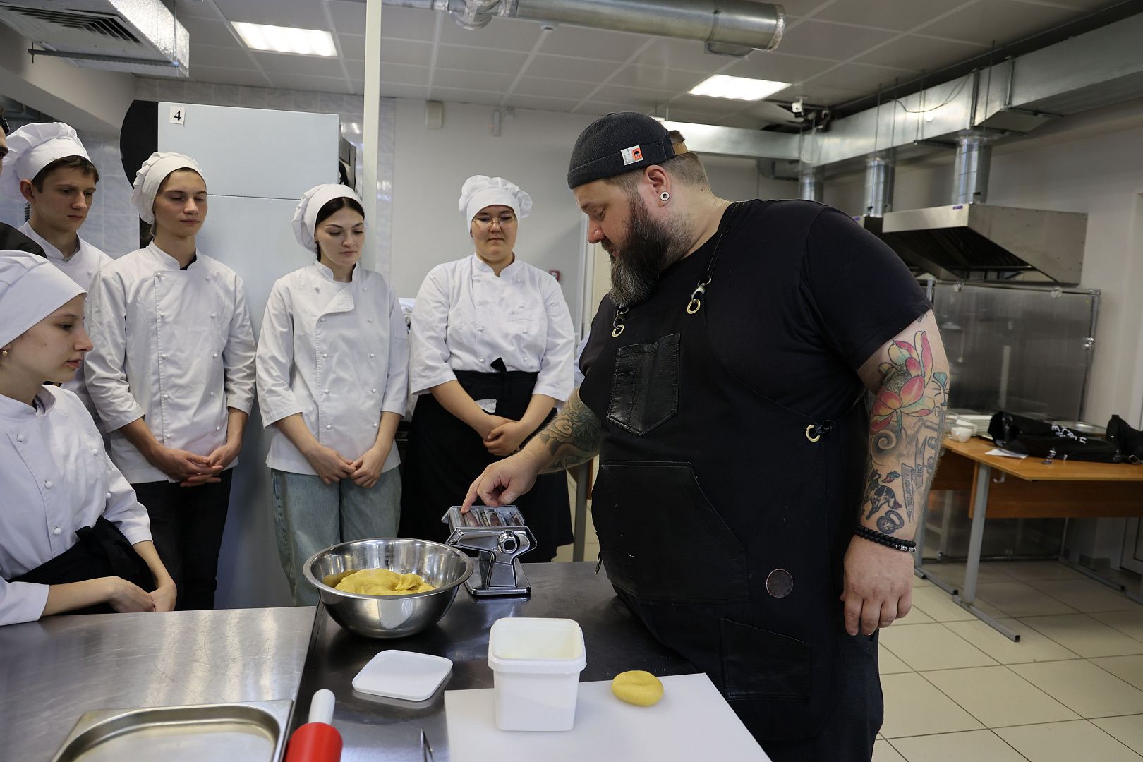 Студенты специальности «Поварское и кондитерское дело» получили уникальную возможность погрузиться в мир итальянской кухни на мастер-классе, который провел шеф-повар бара «Котики» Владимир Аксенов.
