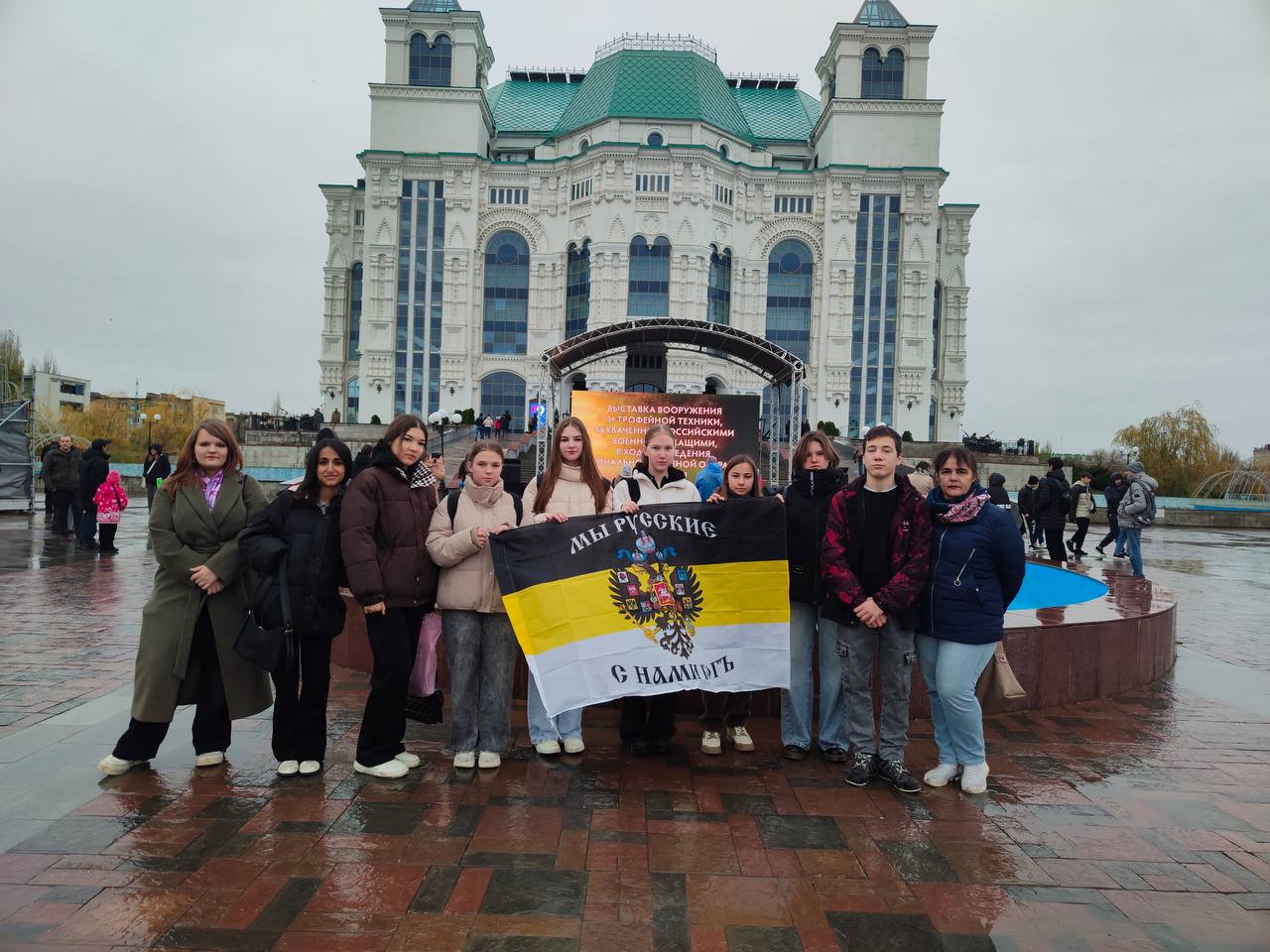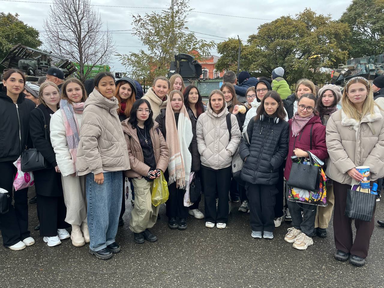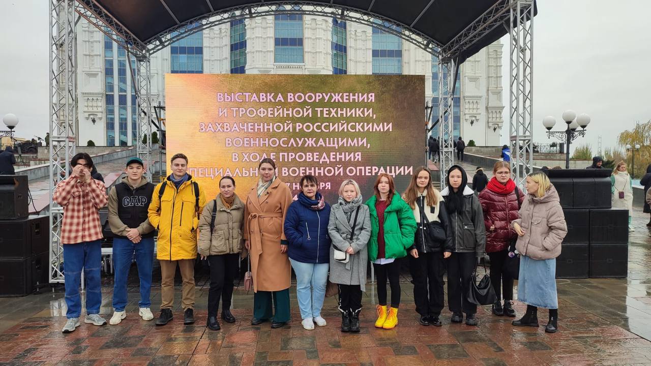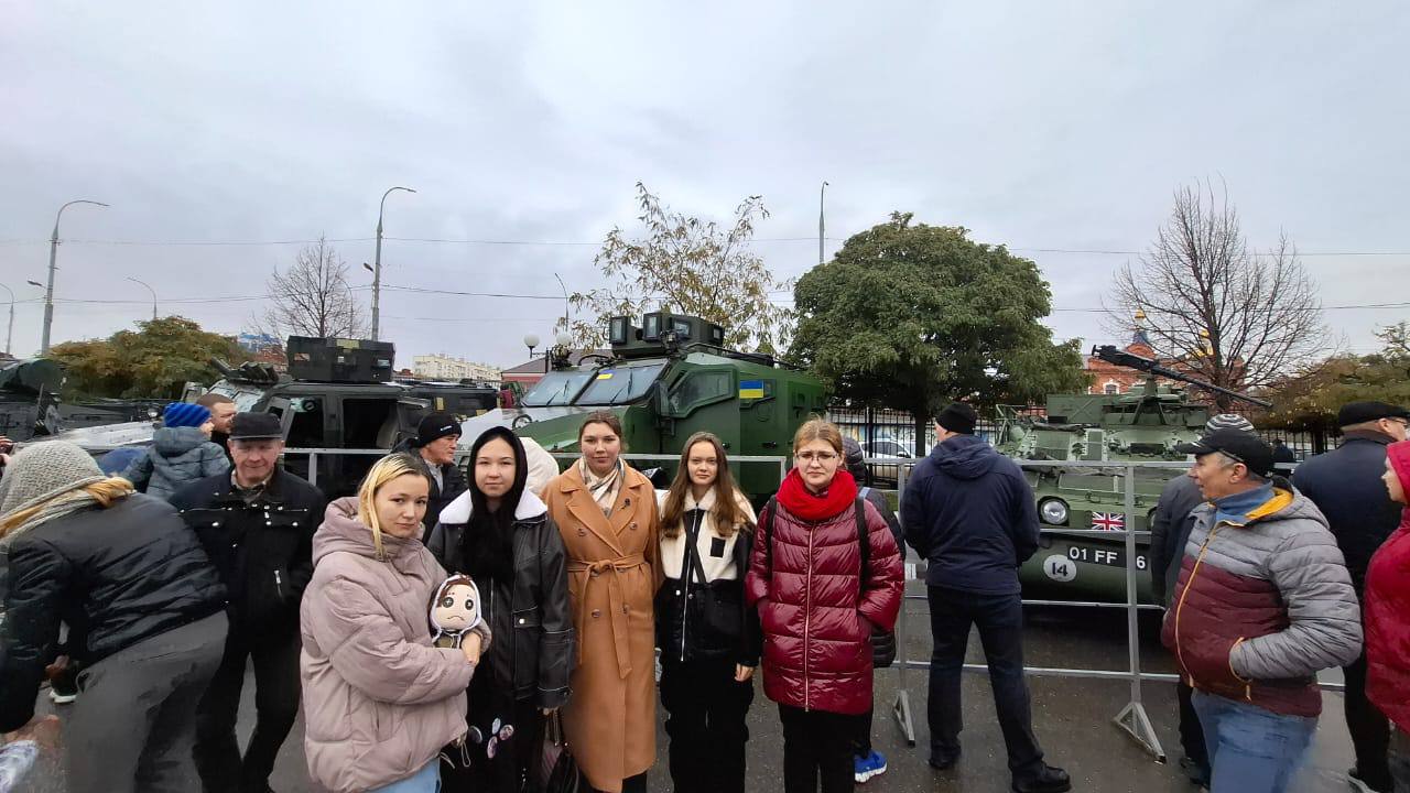 Студенты колледжа вместе с кураторами посетили выставку трофейной техники ВСУ и НАТО, которая была представлена на территории Астраханского театра оперы и балета.