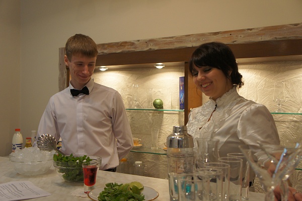 Праздничное блюдо и яркие, коктейли не оставили равнодушными даже самых взыскательных зрителей. Участники рассказали об истории создания блюд и коктейлей, продемонстрировали процесс приготовления, угостили ведущую и всю съемочную группу своими шедеврами и по традиции поздравили всех с новым 2013 годом! Рассказ о коктейлях, как о чем-то утонченно-изысканном, не терпящим суетливости и требующим к себе повышенного внимания, показал то, насколько ребята знают и любят дело, которым занимаются. Наши бармены, поделились мнением, что, несмотря на все существующее многообразие, нет ничего приятнее, чем придумывать собственные рецепты, где полет фантазии может быть неограниченным. Это касалось и очередного авторского блюда «Ягненок с сырным крокером», которое, как нельзя, кстати, подходило к новогоднему столу. Как прокомментировал наш шеф-повар: «Несмотря на то, что праздничный стол это не просто список определенных блюд, но и многолетние традиции, красота оформления, а также мастерство, девизом для приготовления моего блюда стала фраза – просто, быстро, вкусно, необычно!» Мы надеемся, что наши новогодние рецепты не только порадовали змею, но и не разозлили дракона.