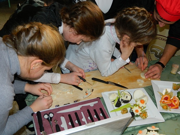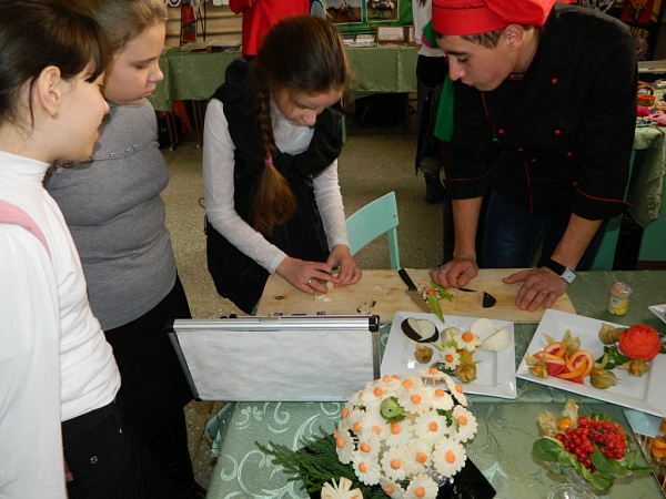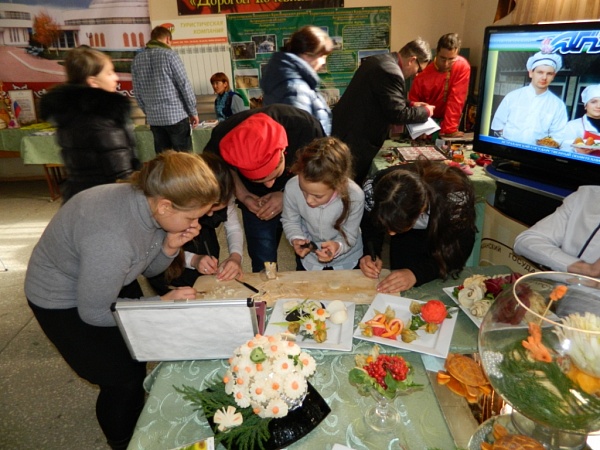 Студентами ОТДЕЛЕНИЯ СЕРВИСНЫХ ТЕХНОЛОГИЙ был дан мастер-класс по карвингу, в котором школьники города Харабали приняли активное участие. Во время мастер-класса ребятам рассказали о «вырезательных» особенностях каждого продукта, показали самые распространенные в карвинге узоры, пояснили, как и когда его уместно использовать. Ребята научились не только вырезать, но и приняли участие в конкурсе на составление художественных композиций, который был организован студентом группы ТП-282 Зубковым Андреем. В подарок, победители унесли домой букеты цветов из овощей и фруктов, искусно вырезанных нашими студентами, а также получили массу незабываемых впечатлений.