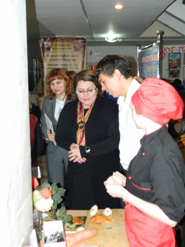 Целью проекта является ознакомление жителей районов с туристическими и культурными объектами нашего региона, раскрыть весь туристический потенциал города и области. В фойе детской школы искусств с. Красный Яр состоялась выставка «По земле Астраханской», подготовленная туристическими компаниями, музеями, учебными заведениями, фирмами по изготовлению и реализации сувенирной продукции, учреждениями культуры района. Все желающие могли увидеть, как из обычных продуктов студенты ОТДЕЛЕНИЯ СЕРВИСНЫХ ТЕХНОЛОГИЙ Астраханского государственного политехнического колледжа изготавливают настоящие произведения искусства – корабли из тыквы, красочные цветочные композиции из моркови и яблок.