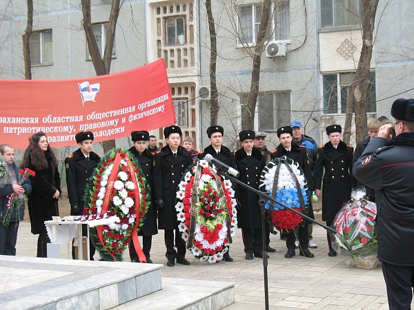 Митинг открылся выступлением начальника управления по внутренней политике администрации губернатора Дмитрия Жилинского. Затем выступили: священник - отец Михаил Пристая, благочестиво помянувший павших на той войне и высказавший много благих слов в адрес живых воинов-интернационалистов, 1-й заместитель верховного муфтия России Назымбек хазрят, которому самому довелось бывать в 80-х годах с тогдашним председателем облисполкома А.П. Гужвиным в Афганистане, председатель Астраханской областной общественной организации союза ветеранов Афганистана Н.Н. Насад, военный комиссар Астраханской области полковник запаса Ю.К. Першин, председатель общественной организации инвалидов боевых действий в Афганистане и в Чечне Р.В. Кириллов, и д.р.