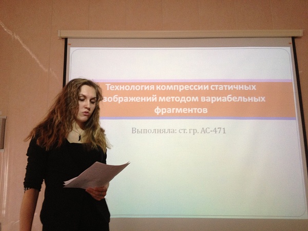- Павлушина Надежда, гр.АС471 "Технология компрессии статичных изображений методом вариабельных фрагментов" (секция "Обработка изображений")