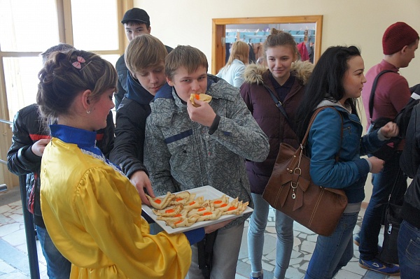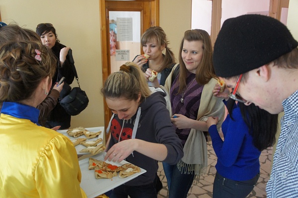 С огромной радостью студенты и педагоги демонстрировали знания пословиц, поговорок и загадок о Масленице, смеялись над собой и смешили других. В благодарность за активное участие все были награждены вкусными блинами.