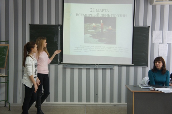 На отделении сервисных технологий прошло открытое мероприятие, посвященное всемирному дню поэзии, под руководством преподавателя Кошенковой Натальи Владимировны.