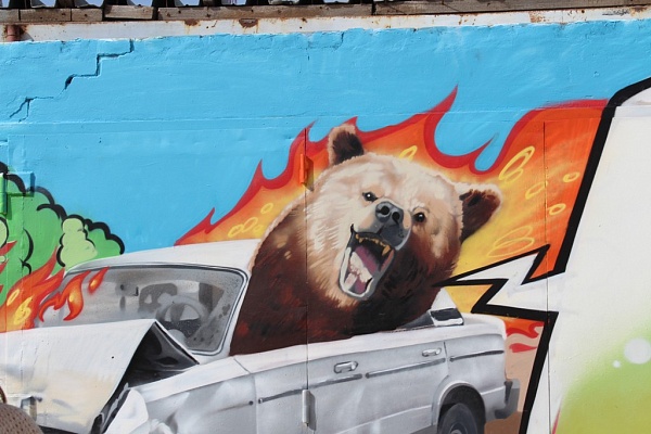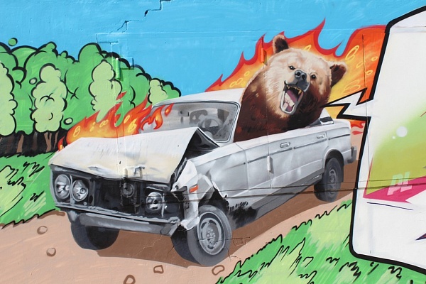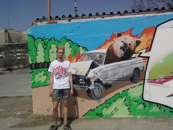 Александр давно известен в стенах колледжа своими работами: панно «Масленица», «Стрекоза», рекламный щит «Поступай в АГПК!» и др. Вот и в этот раз он принял активное участие в мероприятиях блока граффити и стрит-арта. Его Медведь на разбитых Жигулях, одна из лучших работ Александра, вызвала восторг не только у местной публики, но и у немецких художников. За участие в проекте Садовников Александр награжден Почетной грамотой Министерства культуры Астраханской области.