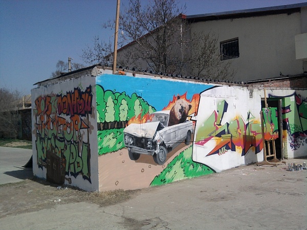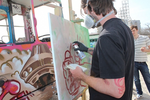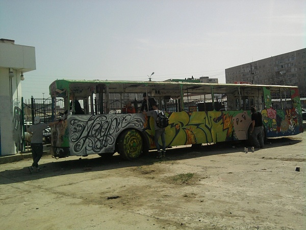 6-7 апреля был реализован совместный русско-немецкий проект – роспись стены в центральном парке культуры и отдыха «Аркадия» и создание арт-объекта «Старый троллейбус».
