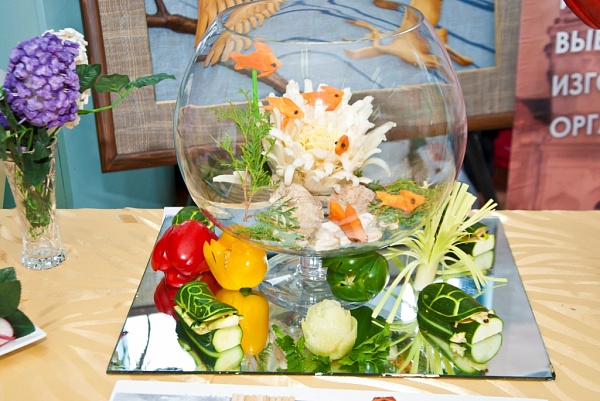 ОТДЕЛЕНИЕ СЕРВИСНЫХ ТЕХНОЛОГИЙ Астраханского государственного политехнического колледжа приготовили для гостей мероприятия, среди которых Министр спорта и туризма Астраханской области Дементьев О.В., заместитель министра спорта и туризма Астраханской области Жилкина Н.М. и др., уникальную выставку. Ожившие цветы из овощей и фруктов, ветреные мельницы, золотые рыбки и голландские башмачки поражали гостей мастерством и изысканностью.