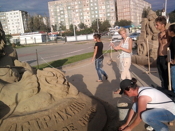 В рамках культурно-художественного проекта «Арт-радуга» регионального министерства культуры и Астраханского художественного училища им. П. Власова с 2 по 8 сентября в Астрахани проходил конкурс «Песчаная скульптура Понизовья». В прошлом году этот проект проводился в формате фестиваля. На этот раз организаторы решили провести конкурс и пригласили участвовать студентов и художников не только из Астрахани, но также других регионов России. К сожалению, смогли приехать только команды из Элисты и Ахтубинска.