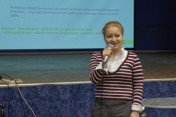 Сбербанк - международная финансовая корпорация с представительствами в 20 странах мира, крупнейший банк России и стран СНГ. Новые роли, интересные проекты, программы обучения и другие преимущества карьеры в Сбербанке были представлены студентам специальности 080114 Экономика и бухгалтерский учет (по отраслям) менеджером по подбору персонала Астраханского отделения № 8625 ОАО «Сбербанк России» Елдышовой О. А. Попав в команду Сбербанка, студенты получат возможность строить карьеру в масштабах всей системы Сбербанка.