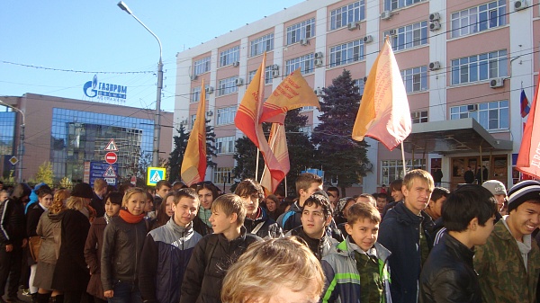 24.10.13 студенты механического отделения приняли участие в шествии, посвященному 25-ой годовщине поискового движения в России. Маршрут движения участников шествия проходил по улицам Советская – М. Аладьина – Тредьаковского – Братский садик.