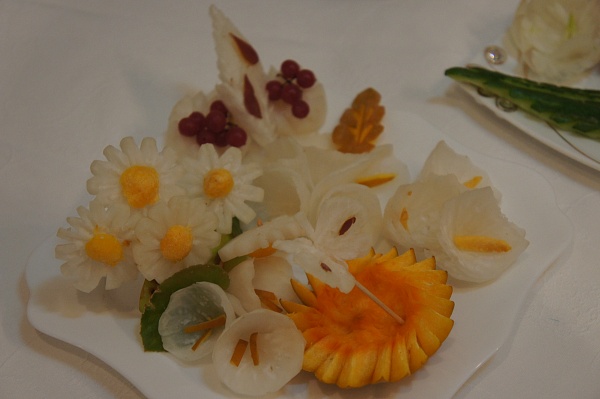Искусство художественной резки по овощам и фруктам (или карвинг) в последние годы пользуется огромной популярностью. На сегодняшний день существует множество разнообразных техник и трафаретов этого вида искусства. Мало того, в каждый стране есть свои национальные особенности карвинга. В Китае и Японии, например, любят вырезать из овощей и фруктов иероглифы, фигуры драконов, людей и даже боевые сцены. В европейских странах предпочитают цветочную тематику и растительный орнамент.