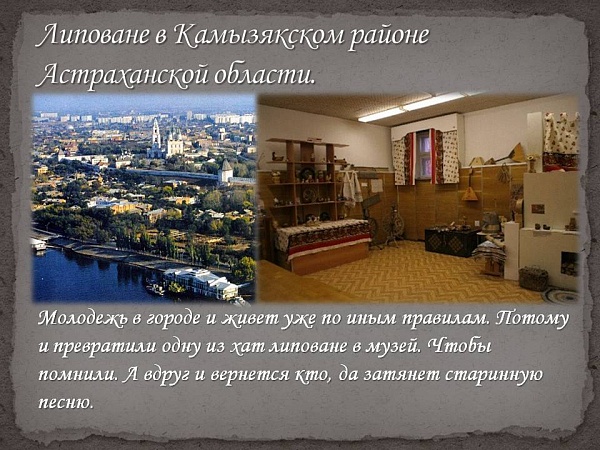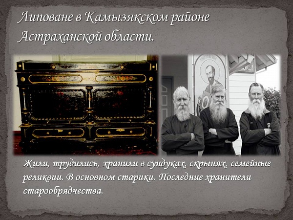 Фестиваль национальных культур народов, населяющих Астраханский край «Мы вместе!» становится традиционным. В этом году в рамках фестиваля проводился конкурс мультимедийных презентаций «Из истории народов, населяющих Астраханскую область». Студенты 1-ого курса отделения ИНФОРМАЦИОННЫХ ТЕХНОЛОГИЙ И ДИЗАЙНА Брилев Игнат, Михеев Сергей и Яхьяев Ефим (гр.ИС171) темой своего исследования взяли небольшую народность с богатым историческим прошлым – липоване.