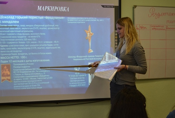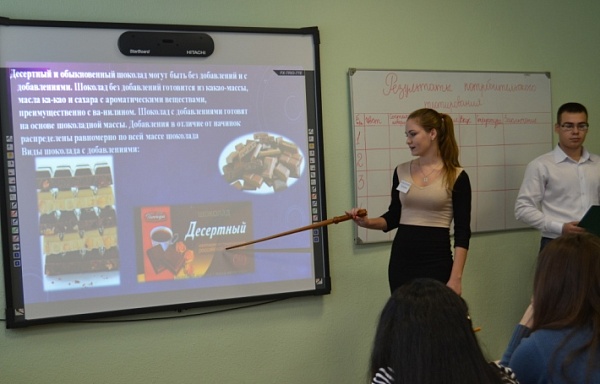 В рамках работы кружка «Товаровед - моя профессия» было проведено мероприятие «Правда ошоколаде», позволяющее получить первоначальные знания и отработать практические навыки по распознаванию ассортимента и оценке качества шаколада. Студенты 3 курса, группы ТЭ-314 поделились своими знаниями со студентами 1 курса группы ТЭ-114, рассказав об ассортименте, потребительских свойствах, способах определения качества шоколада. Первокурсники приняли участие в потребительском тестировании образцов шоколада. Органолептическим методом они определили подлинность образцов шоколада, выявили фальсификацию, сделали заключение о качестве.