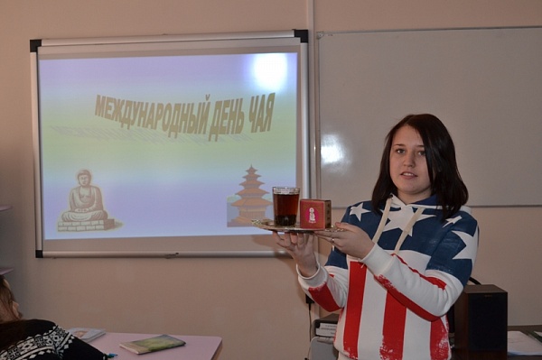 О происхождении чая, его видах и правилах заваривания, рассказали студенты группы ТЭ-314, отмечая Всемирный день чая. Это мероприятие проводилось в рамках работы кружка «Товаровед моя профессия». Студенты специальности 100801 Товароведение и экспертиза качества потребительских товаров порекомендовали различные виды чая для людей, заботящихся о своем здоровье: чай от простуды и усталости, для внимательности и бодрости; рассказали об экзотических видах чая с непривычными названиями: «Мате», «Ройбос» и предложили продегустировать красный, черный и зеленый чай студентам группы ЭУ 231.