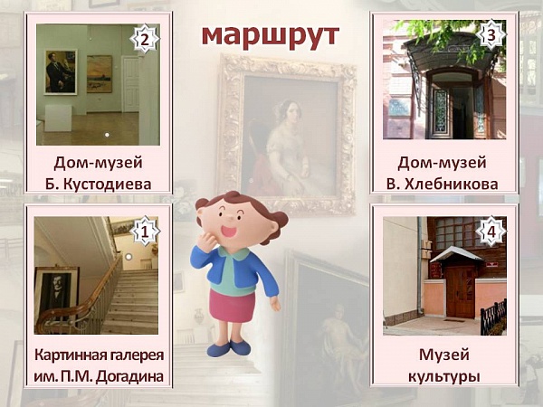 21 февраля на отделении Экономики и права прошло внеклассное мероприятие «Музеи города Астрахани». Студенты группы ЭУ-131 провели виртуальную экскурсию, которая дала возможность за короткий период совершить путешествие в прошлое, познакомиться с биографией и творчеством выдающихся земляков: Догадин П.М., Кустодиев Б.М., Власов П., Хлебников В.В. Хлебникова В.В.
