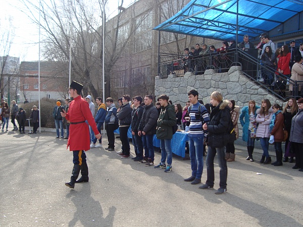 В пятницу 28 февраля состоялось прощание с масленицей – проводы зимы и встреча весны. Мероприятие, проходившее во дворе учебного корпуса по ул. Куликова было организовано силами двух отделений – механического отделения и отделения информационных технологий и дизайна. В ходе мероприятия студенты водили хороводы, играли в старорусские игры «Ручеек», «Золотые ворота» и многие другие. Закончился праздник дегустацией блинов, испеченных студентами. Механическое отделение представляли блины групп РЭМ 141-9, РЭМ 142-9, СЛ 115-9, СП 111-9, РИК 261-9, РЭМ 241-9, СП 311, РЭМ 441.