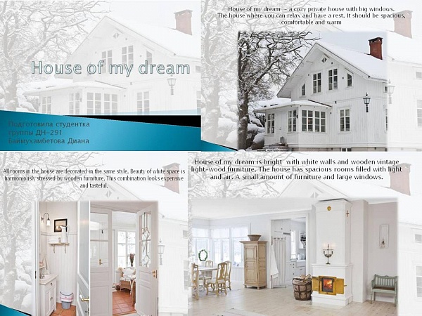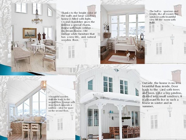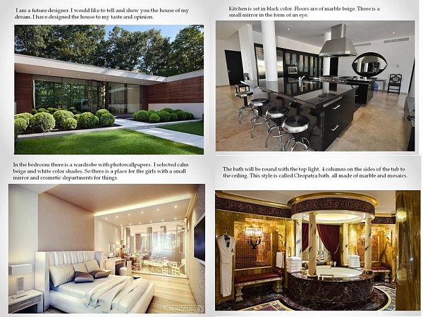 Накануне праздников студенты 2-ого курса специальности «Дизайн» выступили перед аудиторией с презентацией «Дом моей мечты» на английском языке. В своих работах они рассказали о планировке помещений, используемой в них мебели, материалах. Выбор темы не был случайным. Ведь о доме своей мечты рассказывали дизайнеры, специализация которых «Дизайн интерьера». Людмила Викторовна всегда обращает внимание обучаемых на разницу в литературном и разговорном языке. Ведь впоследствии им, скорее всего, не придется читать и переводить тексты, написанные традиционным литературным языком, а изучать литературу, в которой используется профессиональный сленг. К тому же обучение профессиональным особенностям языка вызывает у студентов гораздо больший интерес. Проект «Дом моей мечты» тому подтверждение. При участии в таком проекте каждому студенту достается одно и то же задание, и как сильные, так и слабые студенты имеют возможность проявить свои реальные знания и умения.