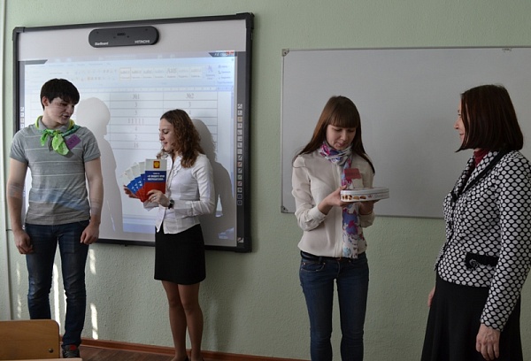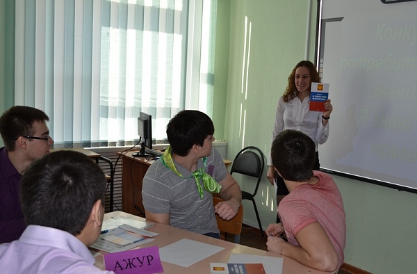 В игре-конкурсе потребительских знаний «Я знаю свои права», проведенной преподавателями Н.А. Киреевой и Е.Н. Дуденковой, приняли участие студенты гр. ТЭ 314 специальности 100801 «Товароведение и экспертиза качества потребительских товаров», которые презентовали свои команды, разыграли проблемные ситуации по вопросам продажи и обмена товаров, подготовили задание на тему «Занимательные истории для потребителей и о потребителях».