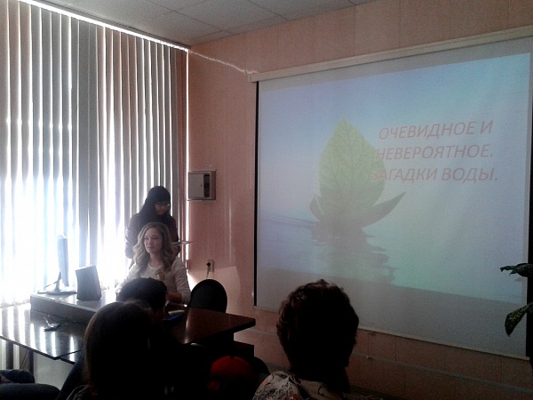 Новокрещенова Кристина и Анджаева Айса остановились в своем рассказе на загадках воды. Так, присутствующим было интересно узнать об эффекте Мпембы – парадокс, который гласит, что горячая вода при некоторых условиях замерзает быстрее, чем холодная, хотя при этом она должна пройти температуру холодной воды в процессе замерзания. Это экспериментальный факт, противоречащим обычным представлениям, согласно которым при одних и тех же условиях более нагретому телу для охлаждения до некоторой температуры требуется больше времени, чем менее нагретому телу для охлаждения до той же температуры. Оказывается вода может находиться не в 3-х известных, а в 4-х состояниях! Вода воспринимает слова, эмоции и даже музыку! Вода обладает памятью и способностью передавать информацию.