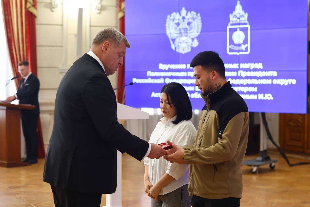 В ходе церемонии были вручены государственные награды родным бойцов, отдавших свои жизни при исполнении воинского долга в зоне СВО. Указом Президента Российской Федерации за отвагу, личное мужество и героизм к наградам представлены 12 астраханцев.