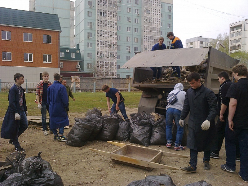 На механическом отделении закончился двухнедельный марафон по уборке закрепленной территории «Зеленый дом». За прошедшие две недели студенты механического отделения привели в порядок не только свою территорию, убрали мусор, посадили кусты сирени, побелили деревья и бордюры. Вчера наши ребята завершили уборку прилегающей территории погрузкой скопившего мусора в мусорные машины. Теперь наша территория выглядит ухоженно и красиво.