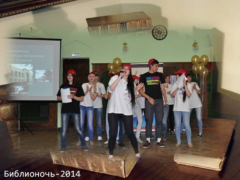 В третий раз в 80 регионах России прошла социально-культурная акция «Библионочь». Библионочь (хотя было бы вернее Библиовечер) стартовала в Астрахани в областной научной библиотеке имени Н.К.Крупской в 19:00 в одно время с подобными акциями по всей России! В этот вечер каждый нашёл себе площадки по интересам: выставки, вернисажи, творческие лаборатории работали до глубокой ночи. Культурное сообщество Астраханской области приняло активное участие в акции. По словам регионального министра культуры Ирины Тарасовой, «Библионочь» пользуется успехом у астраханцев. Цель этой акции – поддержка чтения как образа жизни. Книга – одно из самых великих созданий человеческой культуры. И потому самое главное в культуре любой страны – библиотеки».