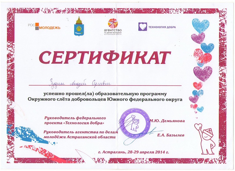 Студенты механического отделения группы РЭМ 142-9 и СП 111-9 приняли активное участие в слете добровольцев Южного федерального округа, который проходил 28-29 апреля 2014г. За время слета наши ребята прошли курс лекций по направлению «Добровольчество», мастер-класс, участвовали в добровольческих акциях и интерактивных мероприятиях. Всего в астраханском слёте приняли участие 250 человек из Республики Калмыкия, Ростовской и Волгоградской областей, а также волонтёрские объединения Астраханской области.