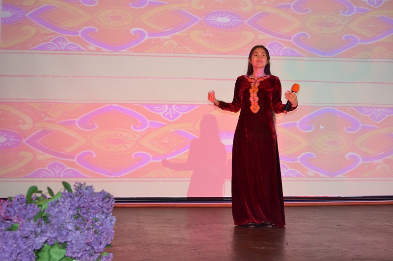 Студенты отделения информационных технологий и дизайна под руководством педагога-организатора Валиевой Л.К. подготовили литературно-музыкальную композицию, посвященную творчеству поэта. Программа включала в себя декламацию стихов, презентацию биографии поэта, видеоролик, познакомивший присутствующих с колоритом туркменского народа, в котором они могли услышать стихи Махмуткули Фраги, прочитанные на туркменском языке.