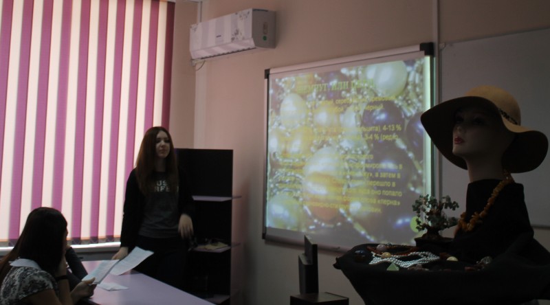Для углубления знаний студентов-товароведов по специальным дисциплинам на базе лаборатории «Товароведение и экспертиза продовольственных товаров. Товароведение и экспертиза непродовольственных товаров» было проведено внеклассное мероприятие, посвященное камням – самоцветам. Студенты группы ТЭ-214 подготовили презентации и выступили перед студентами первого курса с рассказом о свойствах камней, легендах и преданиях, связанных с их использованием, о применении камней в ювелирном деле. Рассказ сопровождался показом натуральных образцов.