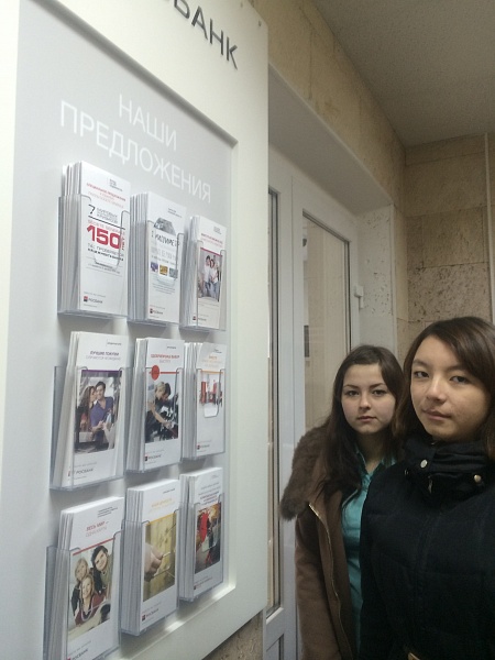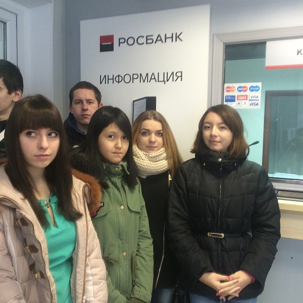 3 декабря 2014г. студенты группы БД-124 сходили на экскурсию в РОСБАНК в честь их профессионального праздника «День банковского работника». Экскурсия дала им не только множество нужной информации, но и ещё хорошее настроение. Управляющая банком рассказала будущим специалистам об их профессии, о том какие должности они могут занимать. Она не только поделилась своими знаниями, но и дала окунуться в жизнь банковского работника. Ведь эта жизнь не так проста, как кажется. Она требует дисциплины, усидчивости и вежливости к посетителям. РОСБАНК входит в 10 лучших банков России. Он предлагает 2 вида потребительского кредита, индивидуальные сейфовые ячейки, различные страховые программы, такие как «Защита жизни и здоровья» и «Защита на случай потери работы». Студентам экскурсия очень понравилась. Теперь они с уверенностью могут сказать: «Моя профессия - банковский работник!»
