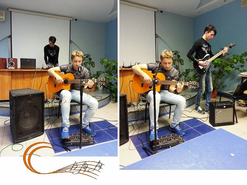 В завершении мероприятия Михеев Сергей и гость из театра оперы и балета Резник Никита спели авторское музыкальное произведение «1000 футов» под собственный аккомпанемент (электронные гитары).