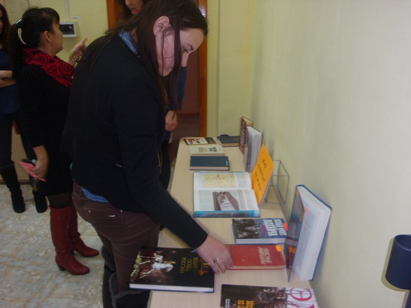 Поэтому ребята группы ДН291 и ДН292 совместно с работниками библиотеки и кураторами учебных групп – Мяте Н.А., Ланихиной М.В. подготовили интересную, очень познавательную и насыщенную программу. Словно бусины на нить были нанизаны исторические факты, фотографии тех лет, песни. Литература, представленная во время мероприятия, неожиданно заинтересовала ребят, что лишний раз доказывает тот факт, что хорошая книга всегда найдет своего читателя.
