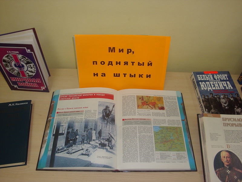 В наступающем году мы будем отмечать славную и горькую дату начала Первой мировой войны. В советское время ее часто называли «империалистической», в царское – «отечественной», в среде русских эмигрантов – «великой». Но как эту войну ни называй, юбилей – событие значимое. И недаром наша власть готовится его широко отметить. Уже начали показывать телепередачи, кинофильмы, издавать книги и публиковать исторические исследования. Собираются в столице поставить памятник в честь ветеранов. Вот и мы не смогли оставить это событие в стороне и с помощью и поддержкой работников библиотеки им.Б. Шаховского организовали экскурс в историю…..