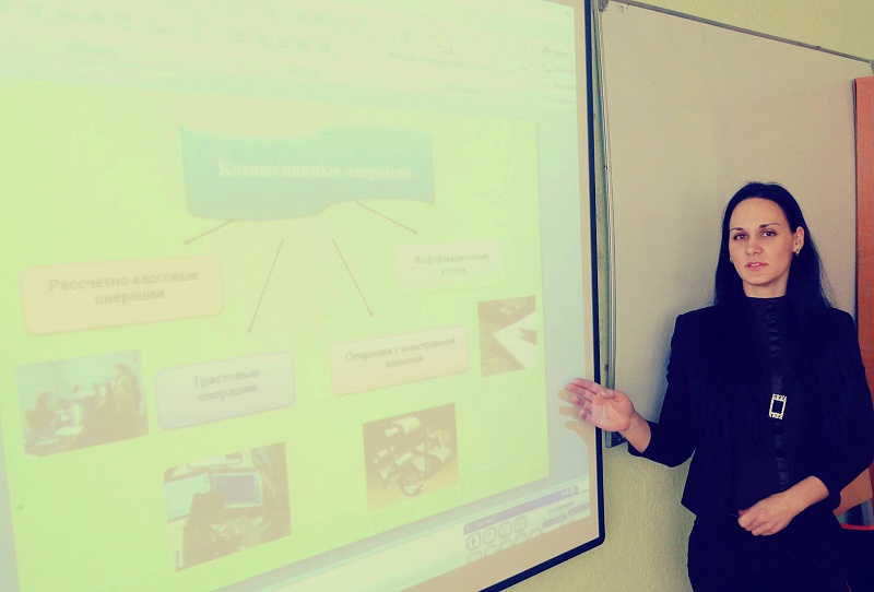 В гр.БД 124 прошло открытое занятие по теме «Коммерческие банки – основное звено банковской системы». В ходе занятия студенты получили полные и прочные знания о коммерческих банках, принципах и функциях коммерческого банка, особенностях банковского баланса, принципах построения счетов, активных, пассивных и комиссионных операциях коммерческого банка.