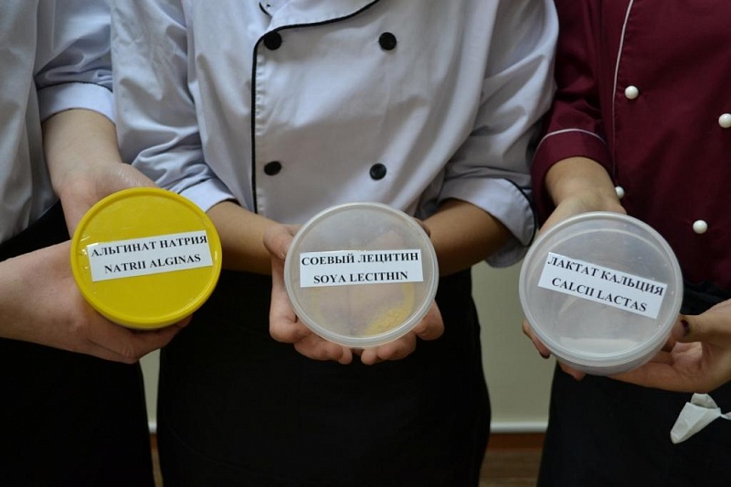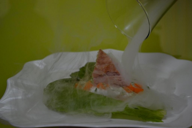 Наибольшую заинтересованность вызвал у студентов мастер-класс: «Чудеса на тарелке. Приготовление блюд и напитков молекулярной кухни». Студенты демонстрировали приемы и технологии приготовления воздушных муссов и пен «эспума», удивительные приемы сферирования и эмульгирования продуктов, копчение блюд с помощью ароматического дыма и др. Активное участие в подготовке урока и мастер-классе приняли студенты гр. ТП-282: Кутлина О., Абрамов К., Кашин А., Зуева А., Каширская Е., Измайлова М., Насамбаева А, Гаглоева Д.