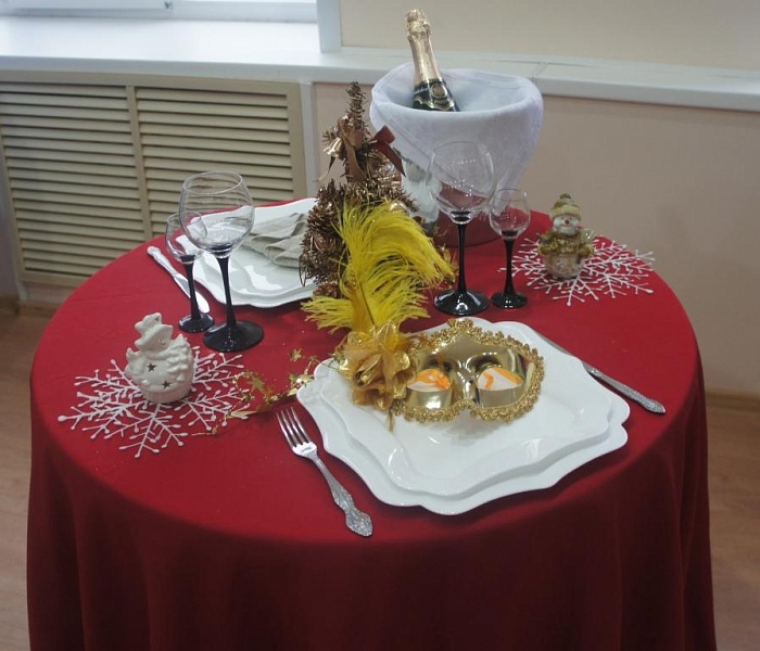 Студенты отделения сервисных технологий предлагают идеи оформления новогоднего стола.