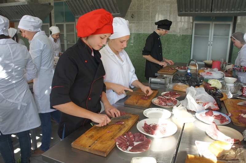 Следующим этапом стала интерактивная кулинария, и каждая команда согласно своему заданию приступила к работе. В каждой команде работал инструктор, который следил за безопасностью, а также помогал решать возникающие трудности в приготовлении блюд. Инструкторами неизменно выступили мастера производственного обучения Н.И. Латышева и Т.А. Умерова.