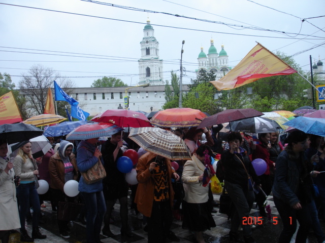 Преподаватели и студенты ГБОУ АО СПО «Астраханский государственный политехнический колледж» несмотря на дождь и пасмурную погоду приняли самое активное участие в праздничном шествии.